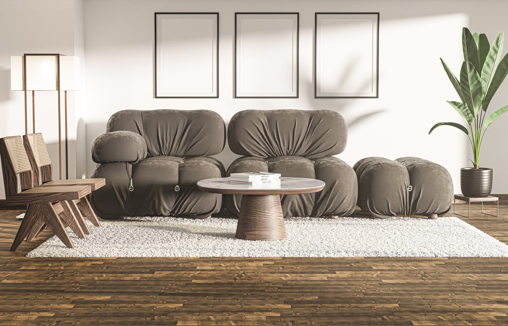 Clean easy-to-use posters on living room mockup. 300DPI. 5040px x 3240px.